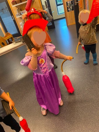 Vi har ulikt materiell tilgjengelig for barna slik at de kan bruke dette i leken.
